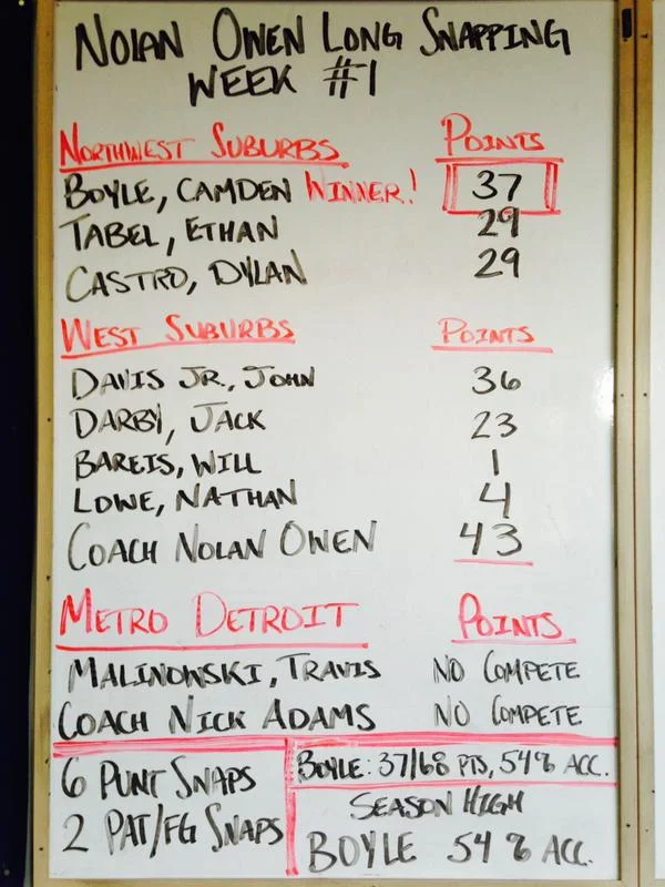 The Nolan Owen Long Snapping Rankings have been UPDATED based on Sunday's target and overall lesson performance. View where you stand among the prestigious rankings HERE! If you have questions regarding rankings and/or ratings, please reach out to me directly and I will be sure to answer your questions professionally.