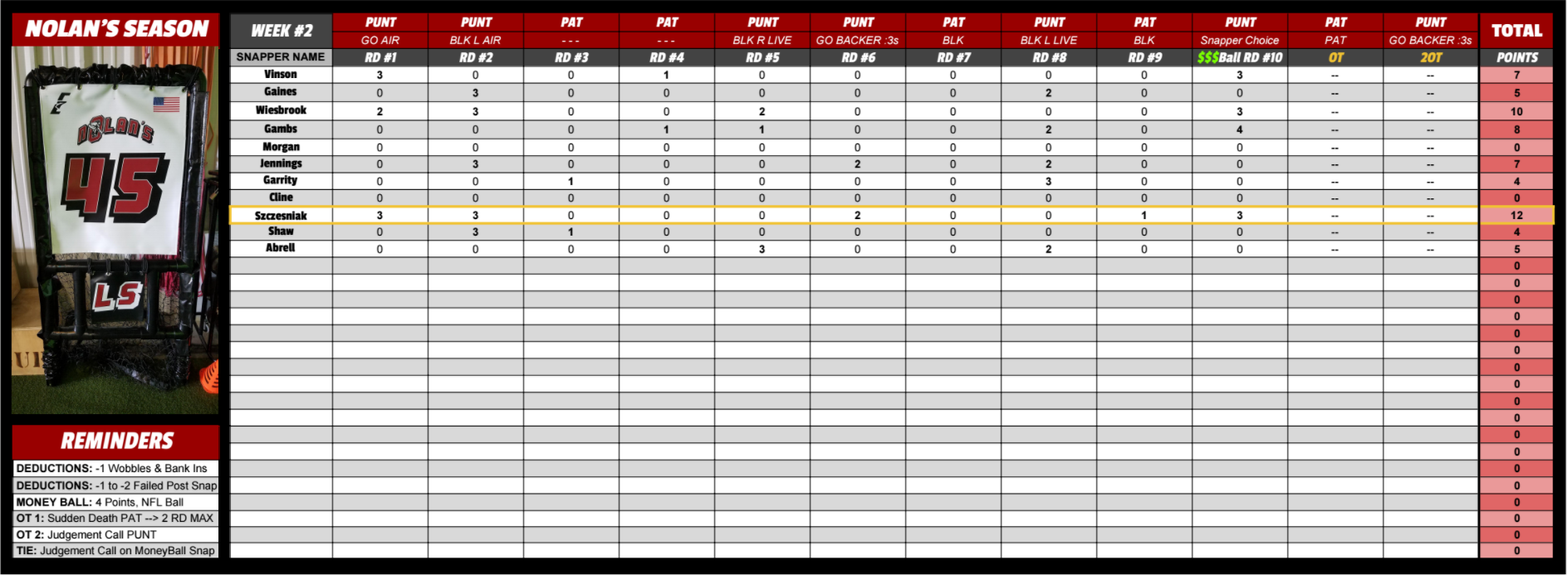 *Patrick Szczesniak currently holds the HIGH-SCORE of the 2017 Season with 12 Points.