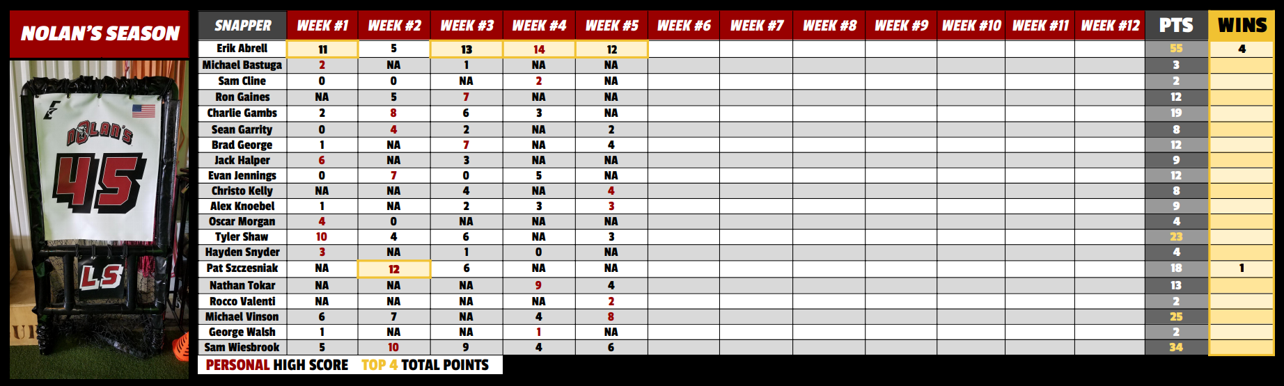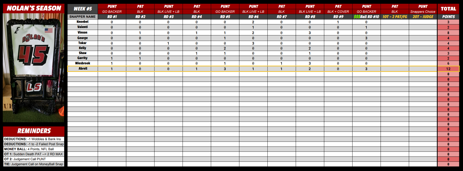 WEEK #5 RESULTS & BOOK THIS WEEK'S LESSONS WITH NOLAN'S LONG SNAPPING!