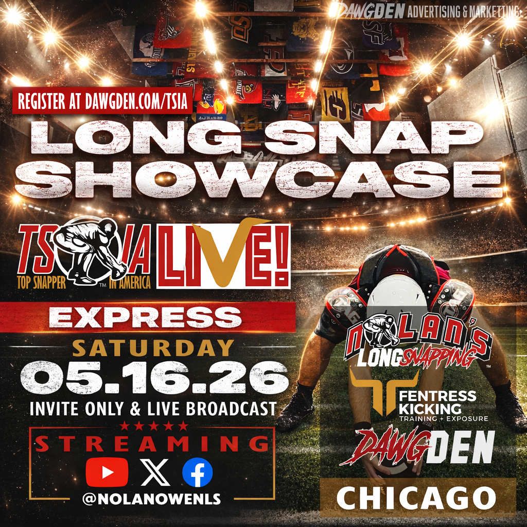 TOP SNAPPER IN AMERICA… the hometown SHOWCASE for Nolan’s Long Snapping! TSIA is the DISTINCTIVELY OBJECTIVE event for Long Snappers to gain 100% unbiased stats-driven star ratings and national standings!